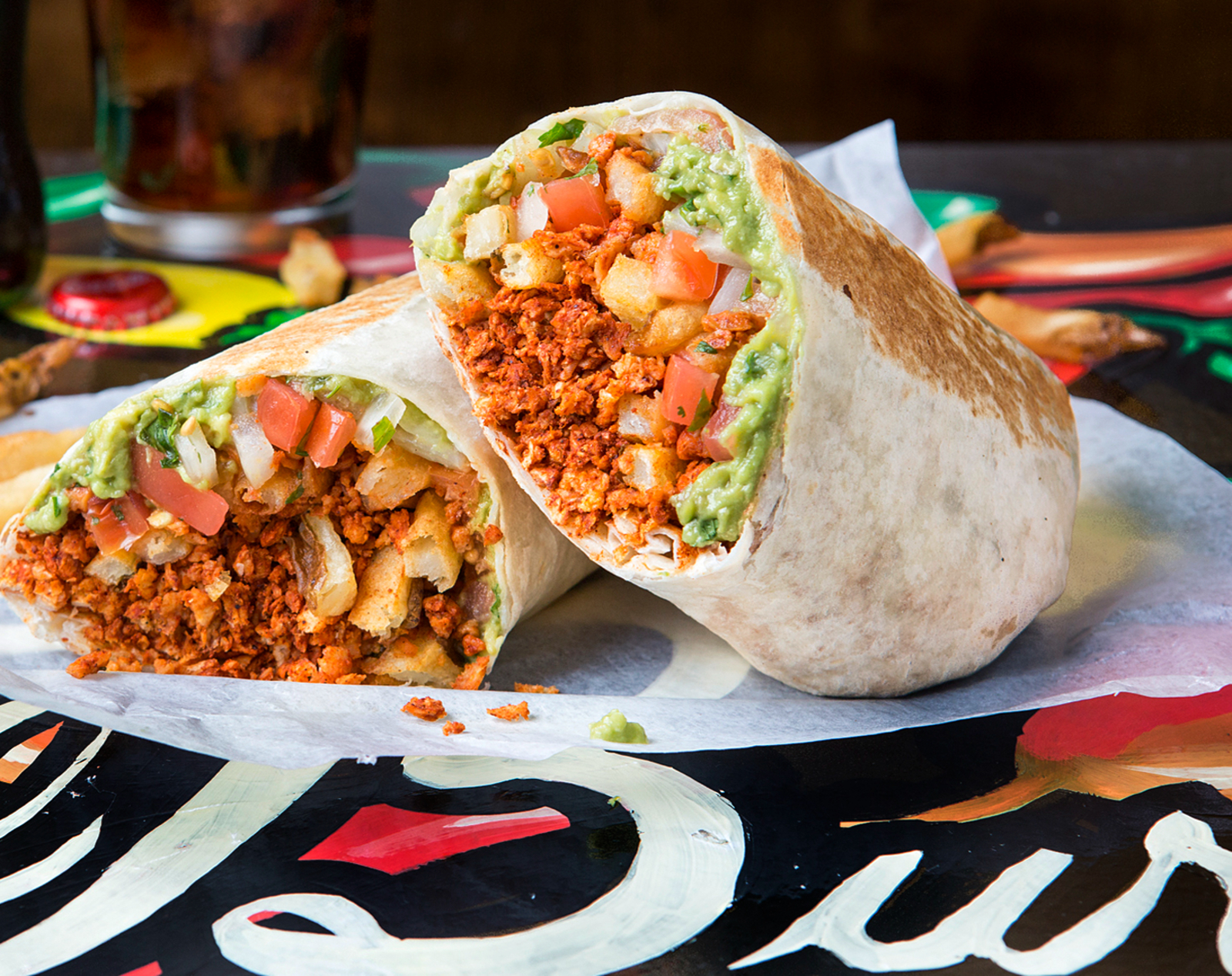Scrambled egg, cheese, fries, and pico. Add chorizo, bacon, or vegan chorizo for additional love!